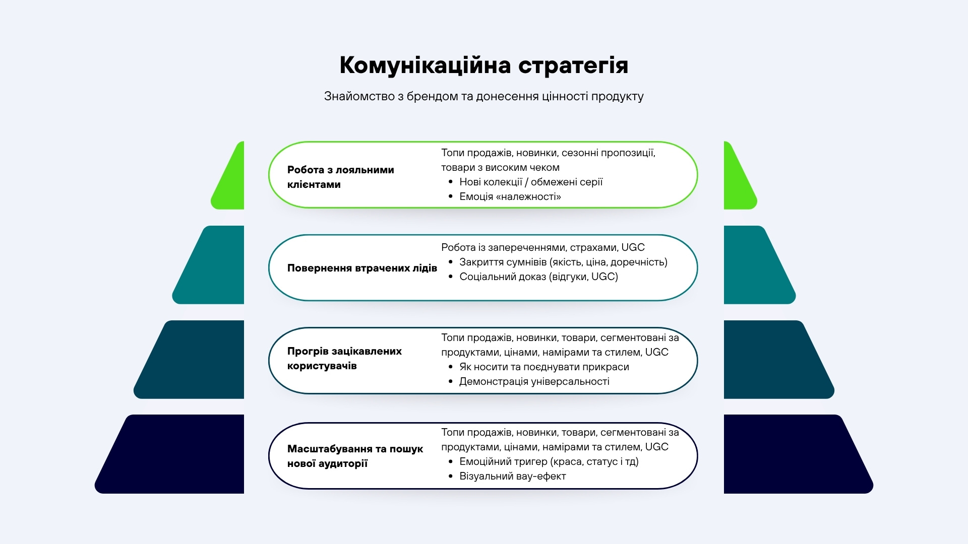 - Für die Erwärmung: Wir demonstrieren Vielseitigkeit – wie man Schmuck trägt und kombiniert, nutzen UGC (User Generated Content).