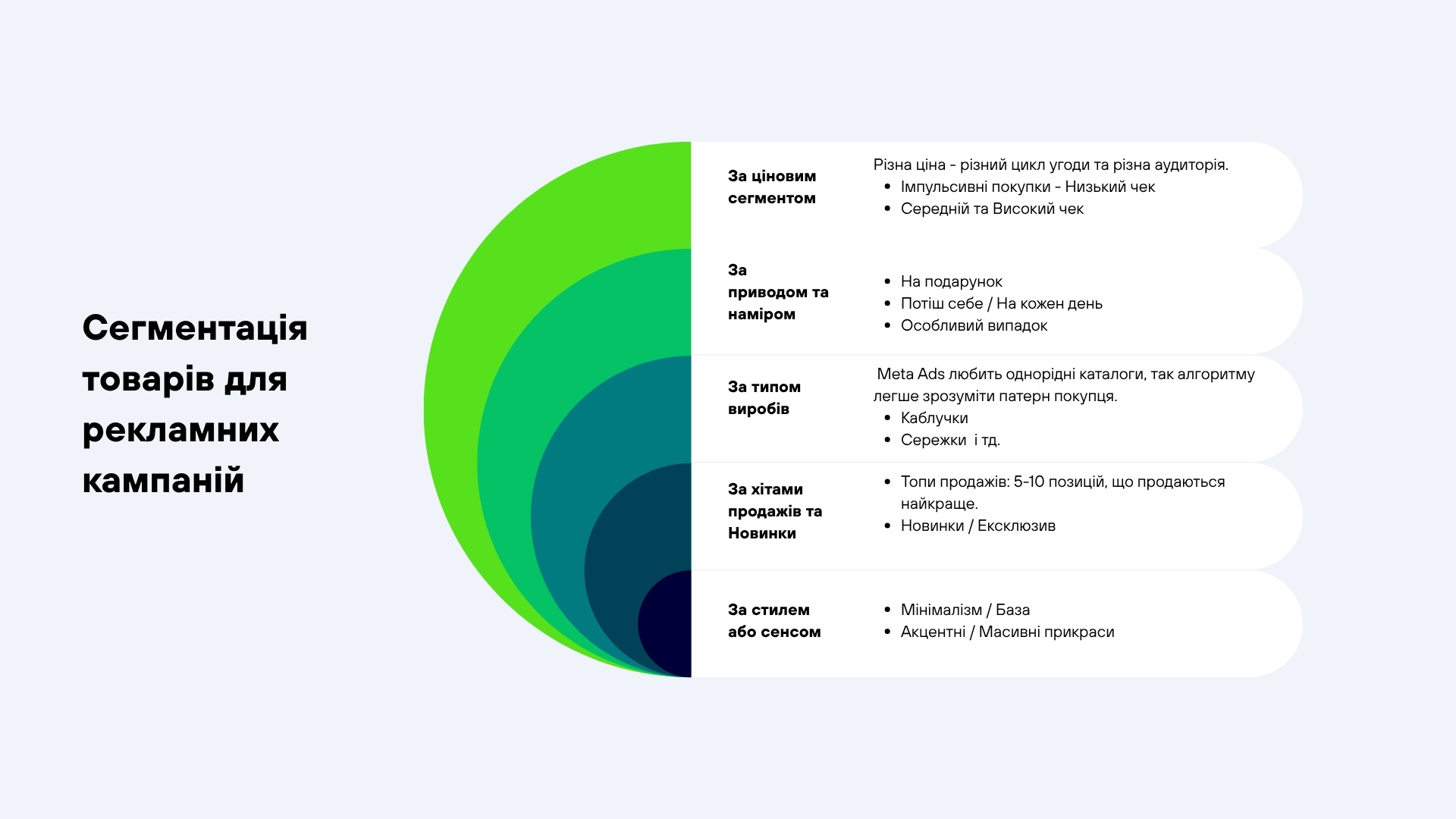 Meta Ads bevorzugt homogene Kataloge, da es dem Algorithmus leichter fällt, das Kaufmuster zu erkennen. Daher müssen Schmuckstücke für Werbekampagnen unbedingt segmentiert werden: